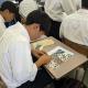 皮、あんを作る人に分かれ手際よく調理していましたが、包むのに悪戦苦闘する生徒がたくさんいました。