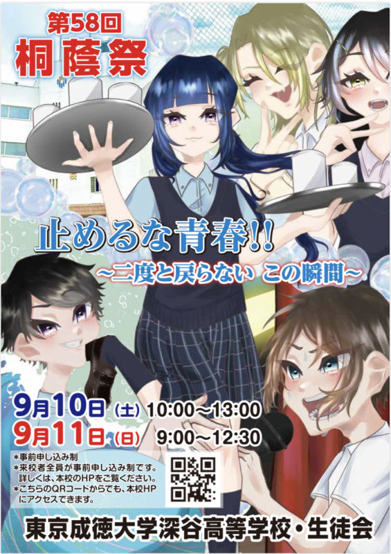 一般公開は9月7,8日の2日間です。ぜひ、笑顔輝く最高の桐蔭祭、来てください!