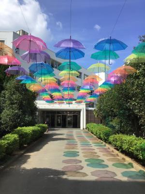 今日は朝からいい天気です、生徒会が作成した、歓迎の門も完成しました。