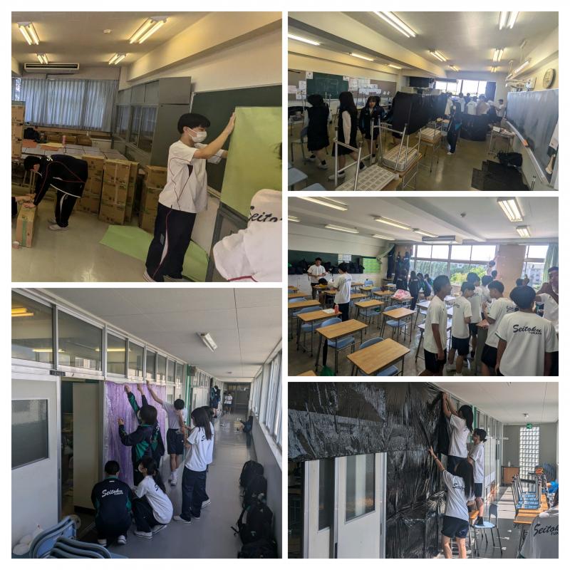 朝からからりと晴れて、暑い日となりました。通常の授業が終わると、いよいよ明日から文化祭の準備となります。