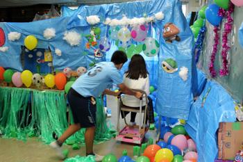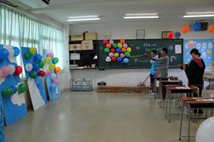 校内は、各教室、準備が始まりました。廊下・教室、机を移動したり、飾りつけを施したり、
