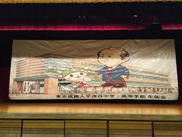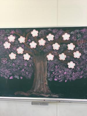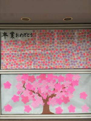 今回、執行部のサプライズ企画として、Fアリーナ入り口の写真スポットの作成と、各教室に保護者の方々からのお祝いメッセージカードで桜の木を作りました。保護者の皆様、ご協力いただきありがとうございました。