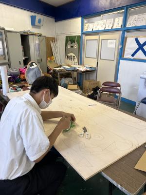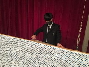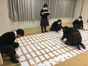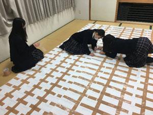 各クラスから提出された貼り絵のピースを、生徒会執行部が貼り合わせていきました。