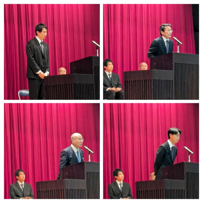 その次は、今年度新しい職員の方をお迎えしました。教頭先生補佐として松本先生、地歴公民科で齋藤先生、数学科で島田先生、事務でお世話になる事務長補佐として高野さん、以上の4名をお迎えしました。