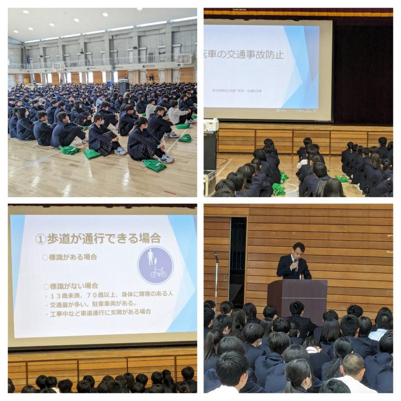今日は月に一度の学校集会の日でした。校長先生からお話をいただいた後、生徒指導部からのお話。