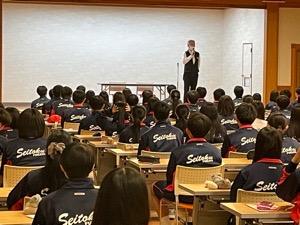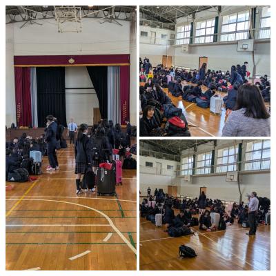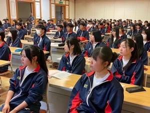本日は月に一回の、全校集会でした。Fアリーナに集合し、まずは校長先生からのお話です。