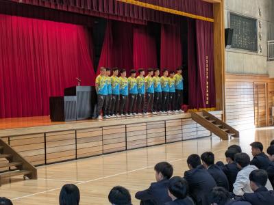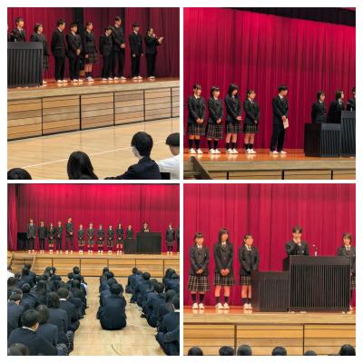 ◇クラス代表としてすばらしいトップバッターだったと感じます。1・2年生や審査員の方たちの前で発表するのはとても緊張すると思うに、自分たちの発表に自信をもって発表していてとてもよかったです。