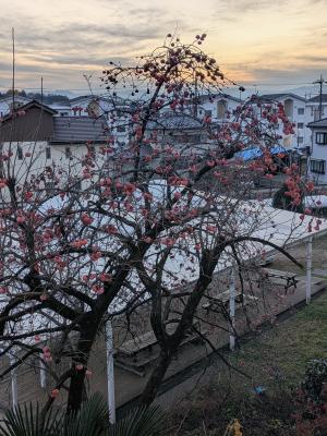 正門脇の梅の木を見ましたら、随分とつぼみがほころんでいました。
