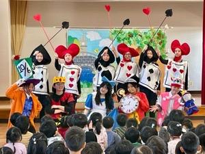 こども教育系(現保育系)の三年生が、「ものつくり表現」の授業で取り組んだ課題≪布を使わないファッションショー≫が開催されました。今年の3年生は『アンパンマン・クリスマスver.』をテーマにして制作、上演していました。