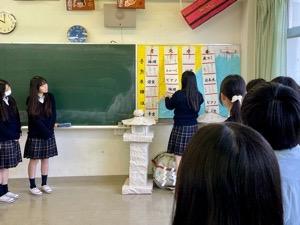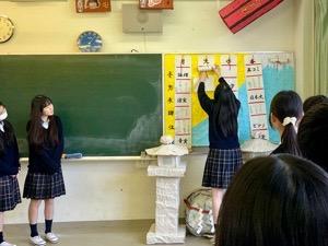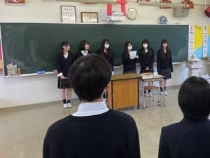 ◇練習の時よりも声のトーンが安定していて、間もしっかりとれていたのでとてもよかったと思います。また全員が顔を上げて発表できていた点もよかったと思います。しっかりと自分たちが調べた結果をまとめられていたので、同じクラスのメンバーとしてとても誇らしい発表でした。