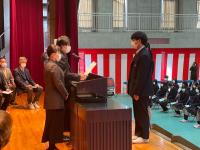 続いて代表生徒へ委嘱状の交付と、記念品となる紫色の「ふくさ」が贈呈されました。