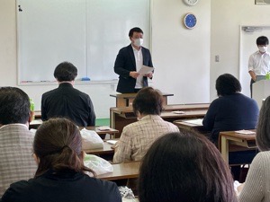 続いて神田校長よりご挨拶をいただき、中高両教頭からは部活動の活躍や学校の様子、また新事務長の紹介等がありました。