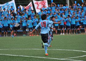 関東大会県予選の結果からシードとなり、本校は3回戦からのスタートとなりました。6月とは思えない猛暑の中での試合となりましたが、選手たちは冷静に試合を進め、3回戦を突破。つづく準々決勝では、先制点を許す苦しい展開となりましたが、後半終了間際に逆転に成功し、勝利することができました。そしてNack5スタジアムで行われた準決勝、昨年の選手権予選でも敗北を喫した相手でした。スタジアムの緊張感からか、前半は防戦一方で、先制点を与えてしまいました。後半は怒涛の追い上げを見せましたが、1点が遠く敗戦となりました。