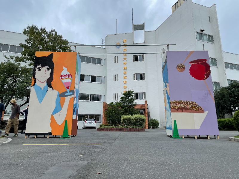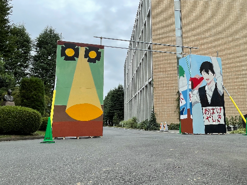 部員たちが夏休み中に描いていた文化祭の門が形になりました!