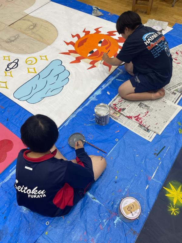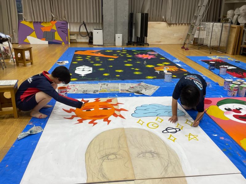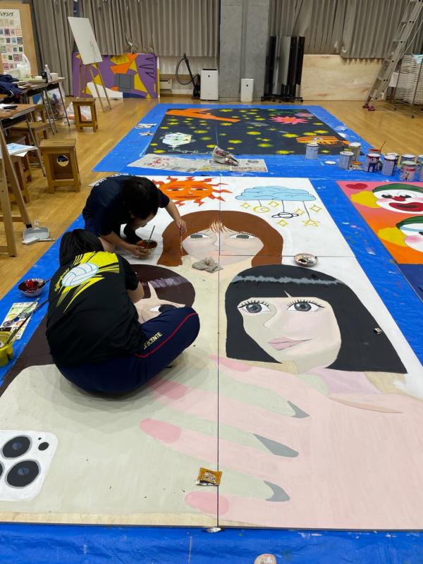 普段では描かない様な大きな画面に戸惑いながらも、部員同士協力しながら作業を進めています。