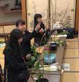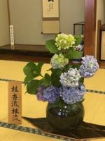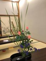 一回目ということで、先生から桂古流桂流の基本、「韻・雅・幽」についてお話があり、剣山に差す位置など丁寧に教えていただきました。とはいえ初めての経験なので、ホントにここでいいの?この茎切っちゃっていいの?という感じでしたね。まあ、当然ですが。
