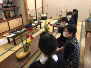 三班に分かれて部活動をおこなうことにしました。(華道部)