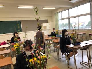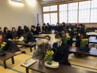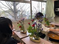 左の写真が1年生、右が3年生です。3年生の作品は花材も多く、豪華に仕上がりました。お花を用意していただいたフラワーズ様、ありがとうございました。