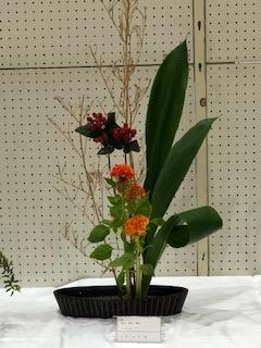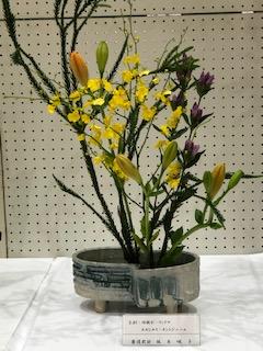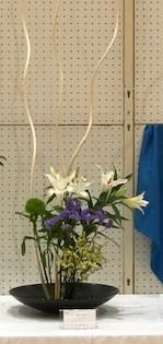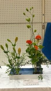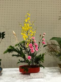 活け上がった作品を見ると、確かに背景があった方が作品の仕上がりがいいような気が、しなくもありませんでした(笑) 下の作品がそれです。いかがですか?