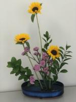 本日の花材:ひまわり スプレーキク 旭ハラン