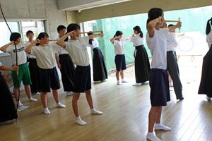 弓を射ることも体験し,とても貴重な時間になりました。(弓道部)