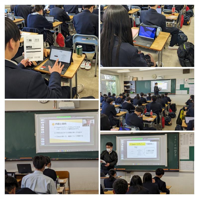 今日の1年生は、オンライン教材の登録会でした。Chromebookを開き、オンラインでの説明で指示を受けながら、、配布されたアカウント情報を入力します。