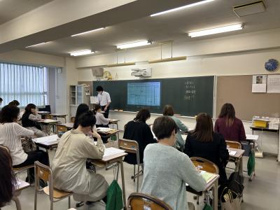 1年生の家庭基礎です。昼食後の午後の授業となりましたが、先生のスライドを熱心に見つめていました。