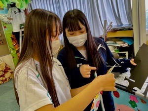 2年生も3年生も園児たちが喜んでくれる教室をイメージしながら日々頑張っています。
