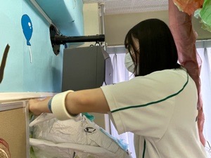 また、実際の新生児の平均体重と同じ人形を使って、オムツ替えの実習も行いました。