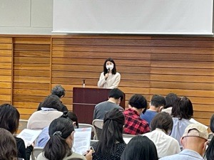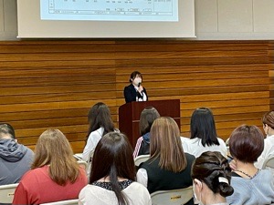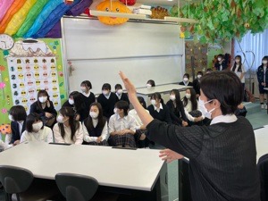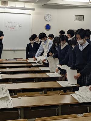 各自それぞれの交通機関を使い、東京成徳大学の十条台キャンパスに向かいました。赤羽から一駅の十条から、徒歩5分。学校に到着すると、深谷校出身の先輩が出迎えてくれました。全体でお話を聞いた後、グループごとに校内をまわりました。