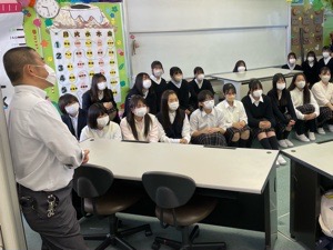 外部から先生をお呼びし、制服の正しい着方を講演していただきました。