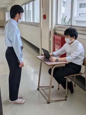1学期も今日で終了です、第1校時はオンラインによる全校集会となりました。校長先生が、校長室から全校生徒に向かって語りかけました。