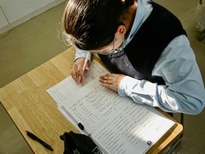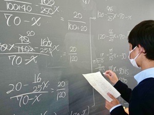 今日の数学は、単元テストです、真剣に取り組んでいます。果たして、結果は?