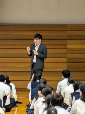 2年後の大学受験・それに向けての来年の選択科目の選択など、外部から講師の先生をお招きして、お話を聞きました。