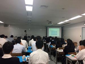 生徒はメモを取りながら,真剣に担当者の説明を聞いていました。