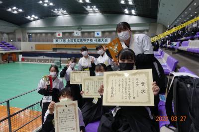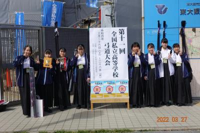 全国私学弓道大会を終えて:この大会では,第8回大会のトーナメント戦で女子が優勝を果たしています。今回女子チーム戦で優勝することができ,2冠を獲得しました。東日本大会、全国私学と2つの大きな大会を経験して、生徒は大きく成長することができたと思います。第12回大会は12月に東京で開催される予定で、ぜひ参加したいと考えています。