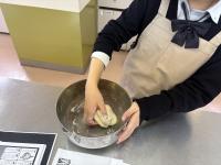 2、3年生を中心にからあげの仕込みをしましたが、鶏肉に悪戦苦闘する生徒もいました。