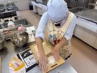 うどん粉をこねる作業に苦労しましたが一生懸命こねていました。