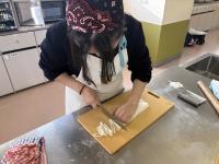また、麺を切る際は太くなりすぎないよう、力加減なども意識し、丁寧に包丁をいれていました。