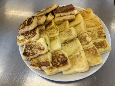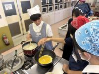 前回までの反省をいかし、卵、食パン、うどんを使い各班で調理しました。