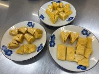 今日はお弁当甲子園に応募する練習として玉子焼きの練習をしました。