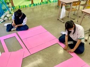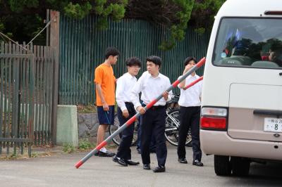 放課後も、すでに準備が始まっていました。生徒会が作った歓迎の門の組み立てが始まっていました。