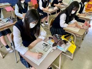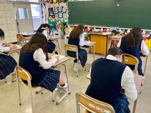 今日の第1校時はLHRの時間です。1・2年の進学コース・進学選抜コースは小論文模試でした。