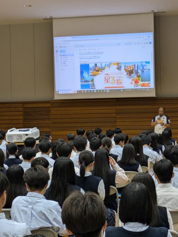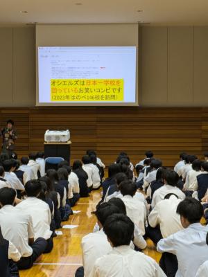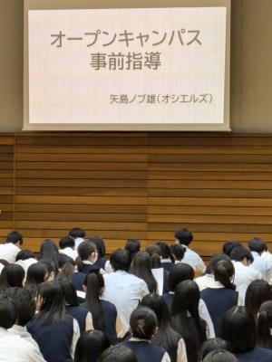 笑いとともに、オープンキャンパスでの注意点などを丁寧に取り上げてくださり、生徒たちも真剣に聞いていました。