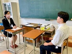 初めての面接練習ということもあってか、緊張した面持ちだった生徒たち。