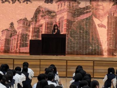 2年後の大学受験・それに向けての来年の選択科目の選択など、外部から講師の先生をお招きして、お話を聞きました。