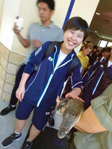 学校間交流で色々な体験をしました!ワニにも触れてびっくり!