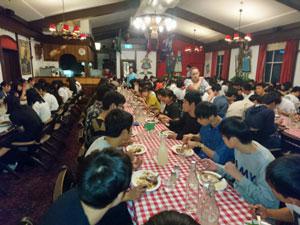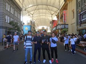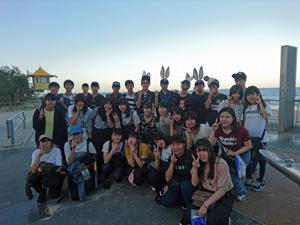 ホテルにチェックインし,サーファーズパラダイスで記念写真。その後レストランでオージービーフのステーキをいただきました。