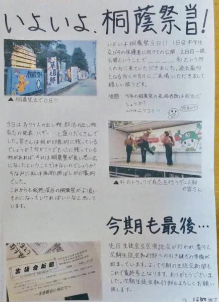 生徒会新聞〜桐蔭祭のお礼〜