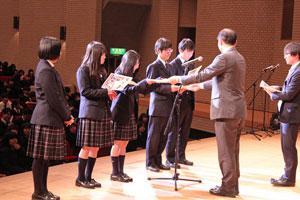 第二部では3年生の表彰,記念品贈呈,3年間を振り返るDVDの上映が行われました。